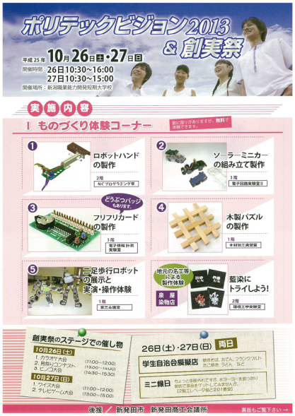 新発田市の新潟職業能力開発短期大学校にて、標記イベントが開催されます。