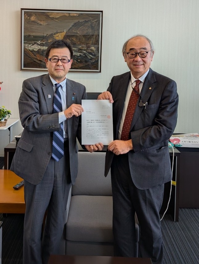 新発田商工会議所では、12月18日、当所島津会頭より、地元中小企業・小規模企業への受注拡大等についての要望書を、二階堂新発田市長並びに湯浅新発田市議会議長へ提出しました。